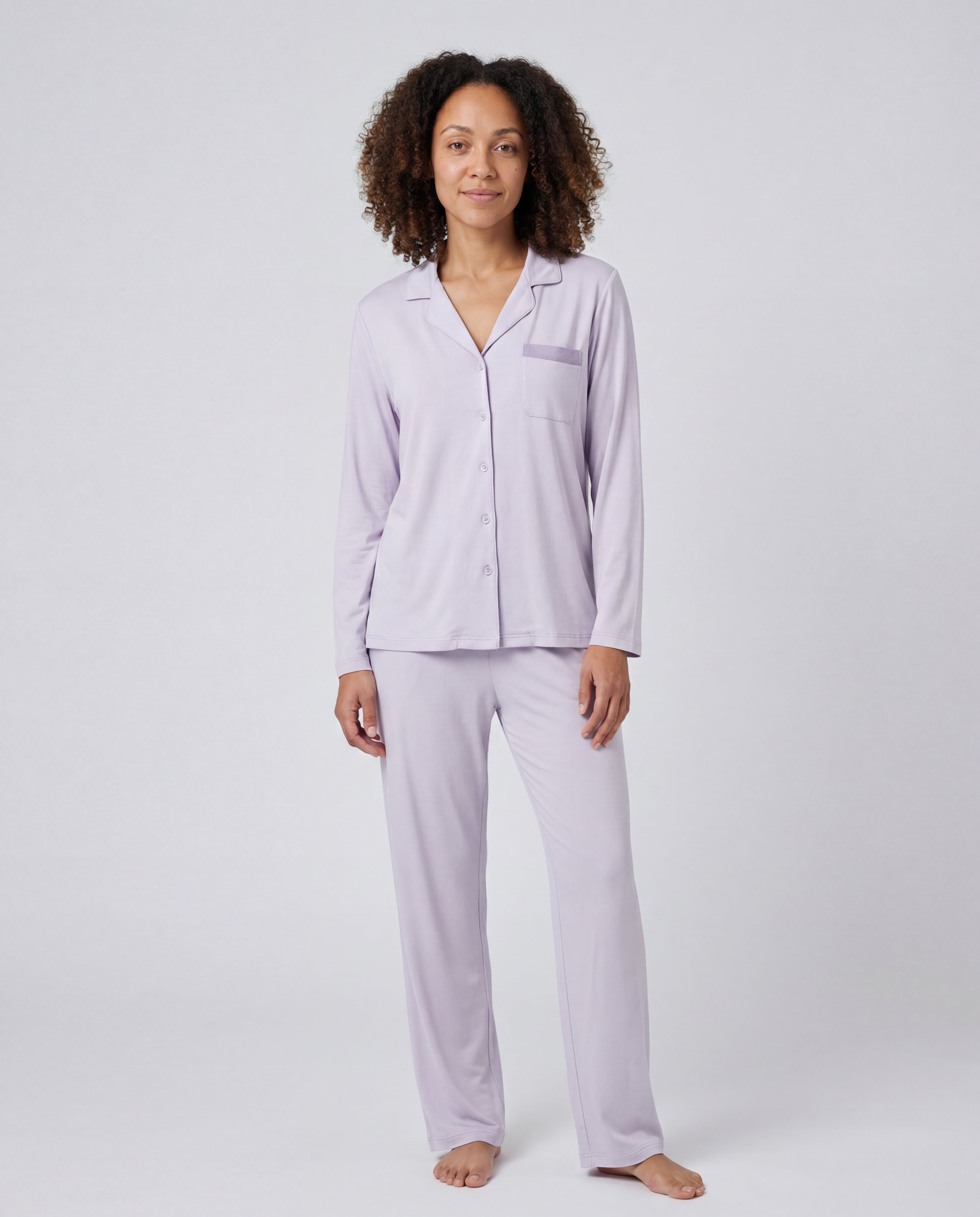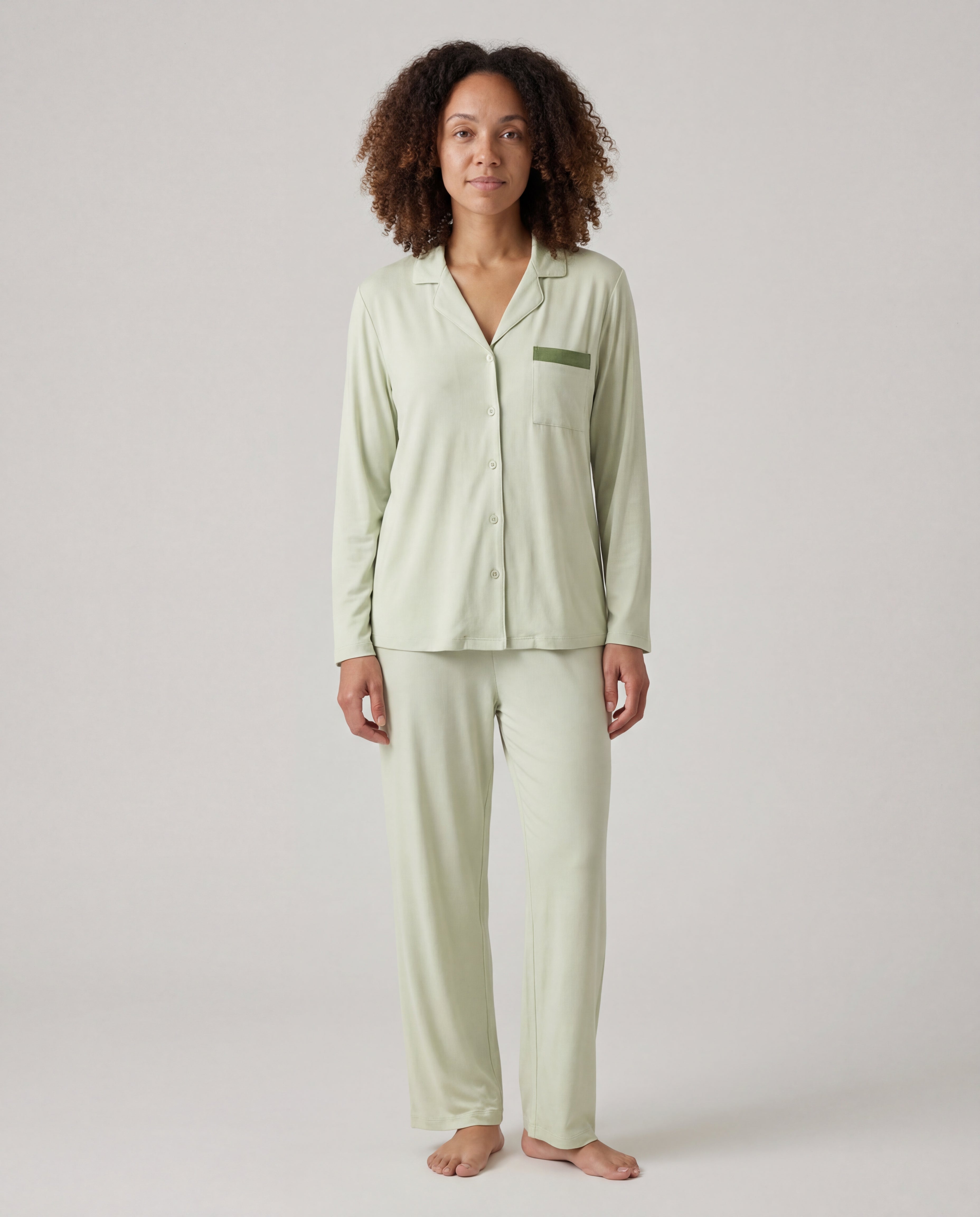 Our bamboo sleepwear has a relaxed, comfortable fit. We recommend choosing your usual size for a classic fit, or sizing up if you prefer a looser style. Check our size guide for detailed measurements.