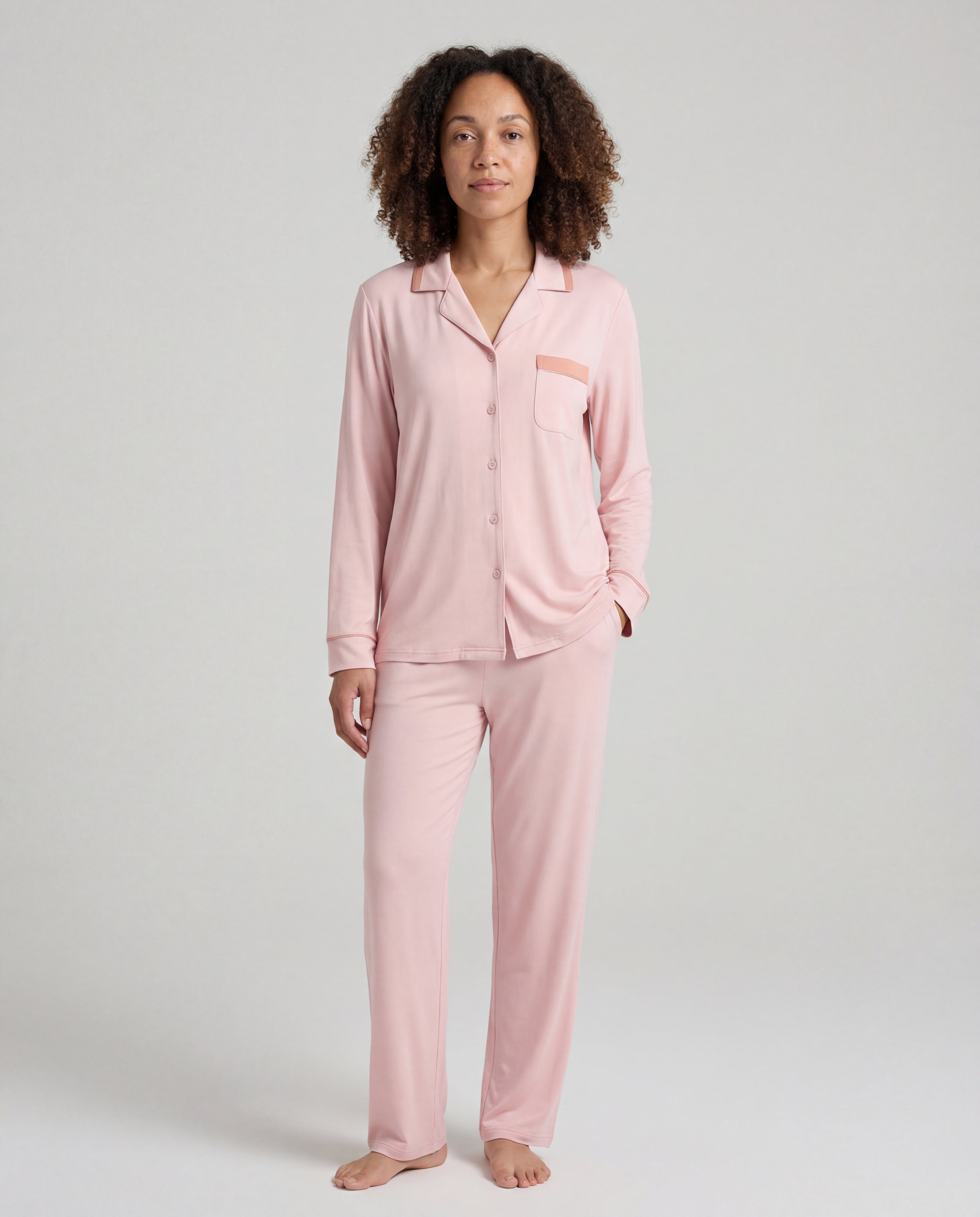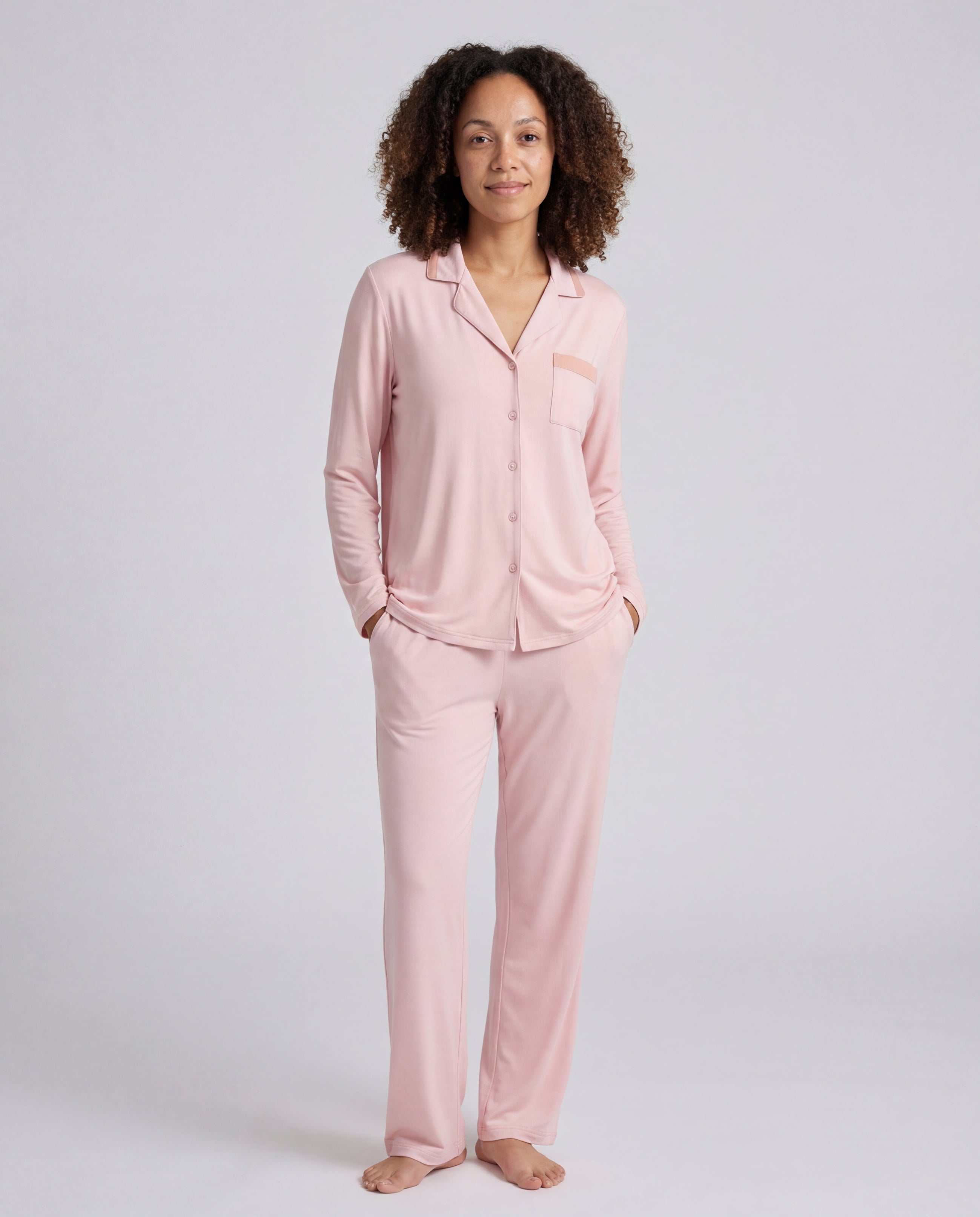 For women who want to feel genuinely held by what they wear to bed. The Velvet set's plush bamboo viscose wraps you in a softness that's hard to describe — and even harder to take off.